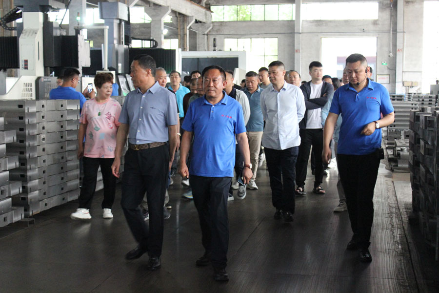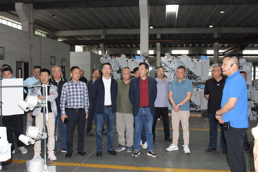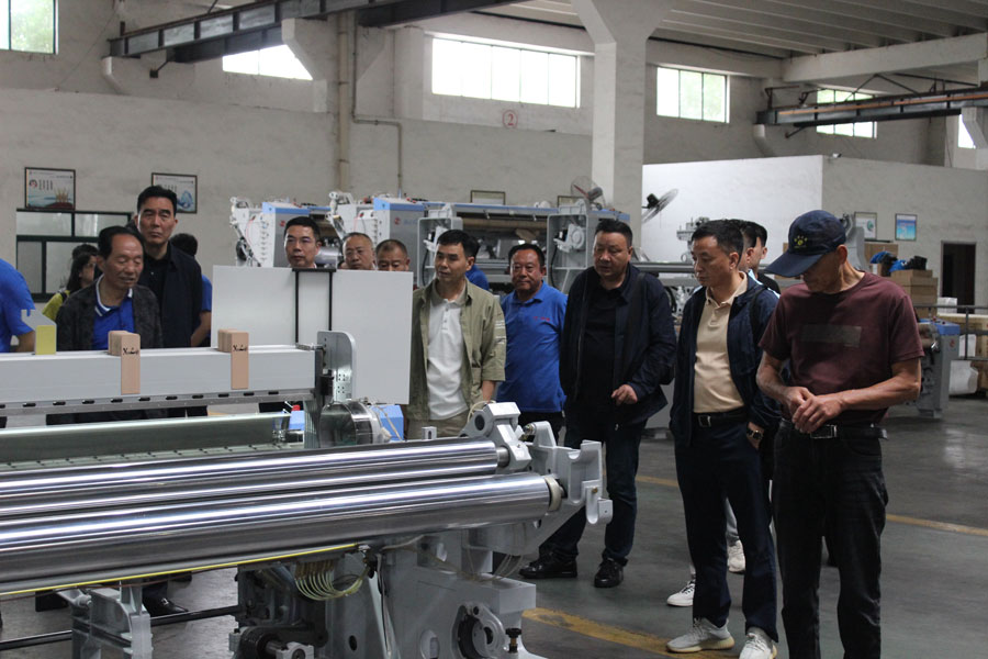 6月14日,為增強(qiáng)織造紡織行業(yè)上下游交流互動(dòng),由盛澤織造商會(huì)榮譽(yù)會(huì)長(zhǎng)吳留生先生、會(huì)長(zhǎng)史連明先生帶隊(duì),商會(huì)監(jiān)事長(zhǎng)、顧問、書記、秘書長(zhǎng)、常務(wù)副會(huì)長(zhǎng)、副會(huì)長(zhǎng)、監(jiān)事及理事會(huì)員一行50余人蒞臨青島天一紅旗紡機(jī)集團(tuán)有限公司參觀指導(dǎo)。公司董事長(zhǎng)劉培德,銷售總監(jiān)李德勝等領(lǐng)導(dǎo)與商會(huì)來賓齊聚一堂,共同參觀了天一紅旗先進(jìn)的制造工廠,共敘友誼,齊繪藍(lán)圖。