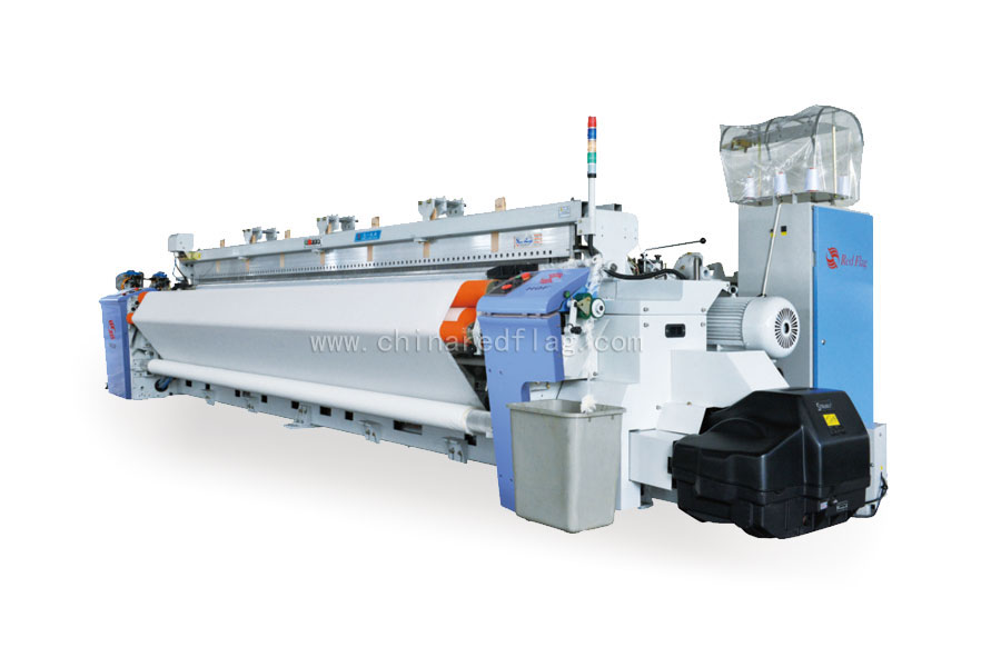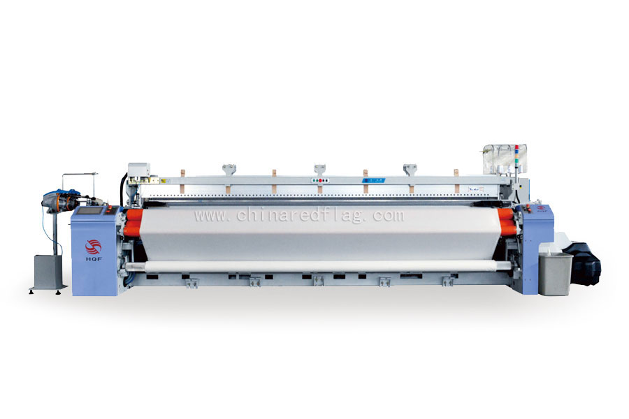 天一紅旗一直在對(duì)噴氣織機(jī)寬幅織造方面進(jìn)行探索與研究,460織機(jī)采用左右雙織軸,變氣壓,變間距的副噴接力引緯方式,力求在較高入緯率下實(shí)現(xiàn)寬幅高效引緯。