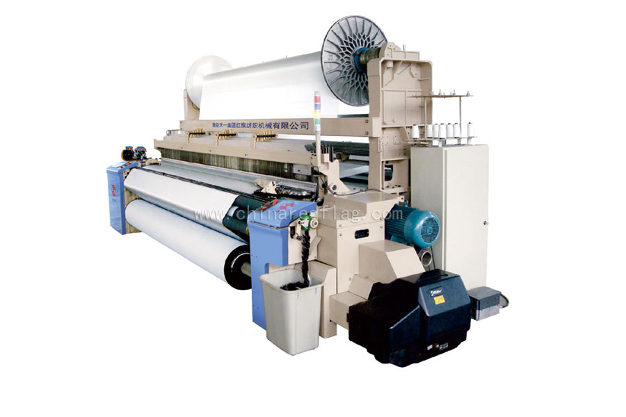 我司新研發(fā)的JA92上下雙重織軸高檔寬幅噴氣織機是針對紡織企業(yè)開發(fā)高附加值雙面織物、色織物研發(fā)而成,該產品具有筘幅寬、轉速高、織物范圍廣、品種適應性強(可應用于棉、毛、絲、麻、化纖等各個紡織行業(yè))、織造效率高、自動化程度高、性能穩(wěn)定可靠等特點,為紡織企業(yè)解決了開發(fā)高附加值雙面織物時遇到的漿紗和織造的難題,是紡織企業(yè)開發(fā)高檔織物產品(高檔單面亮光雙面滌彈絲遮光布、高檔家紡布、色織布)提高產品質量、降低勞動成本、減少環(huán)境污染、提高經濟效益的設備。性能指標:公稱筘幅為190-360cm(可根據(jù)用戶需求生產相應的筘幅),上、下織軸盤片直徑φ800mm(或φ914mm)、主軸轉速400-750rpm(實際車速根據(jù)織物規(guī)格確定)、筘幅可調范圍0-800mm、適用織造長絲或短纖、卷布直徑550mm、上下織軸經紗雙伺服控制、電子多臂開口(16片)、電子卷取(機械卷取)、10.4〞觸摸液晶顯示智能電腦控制 。